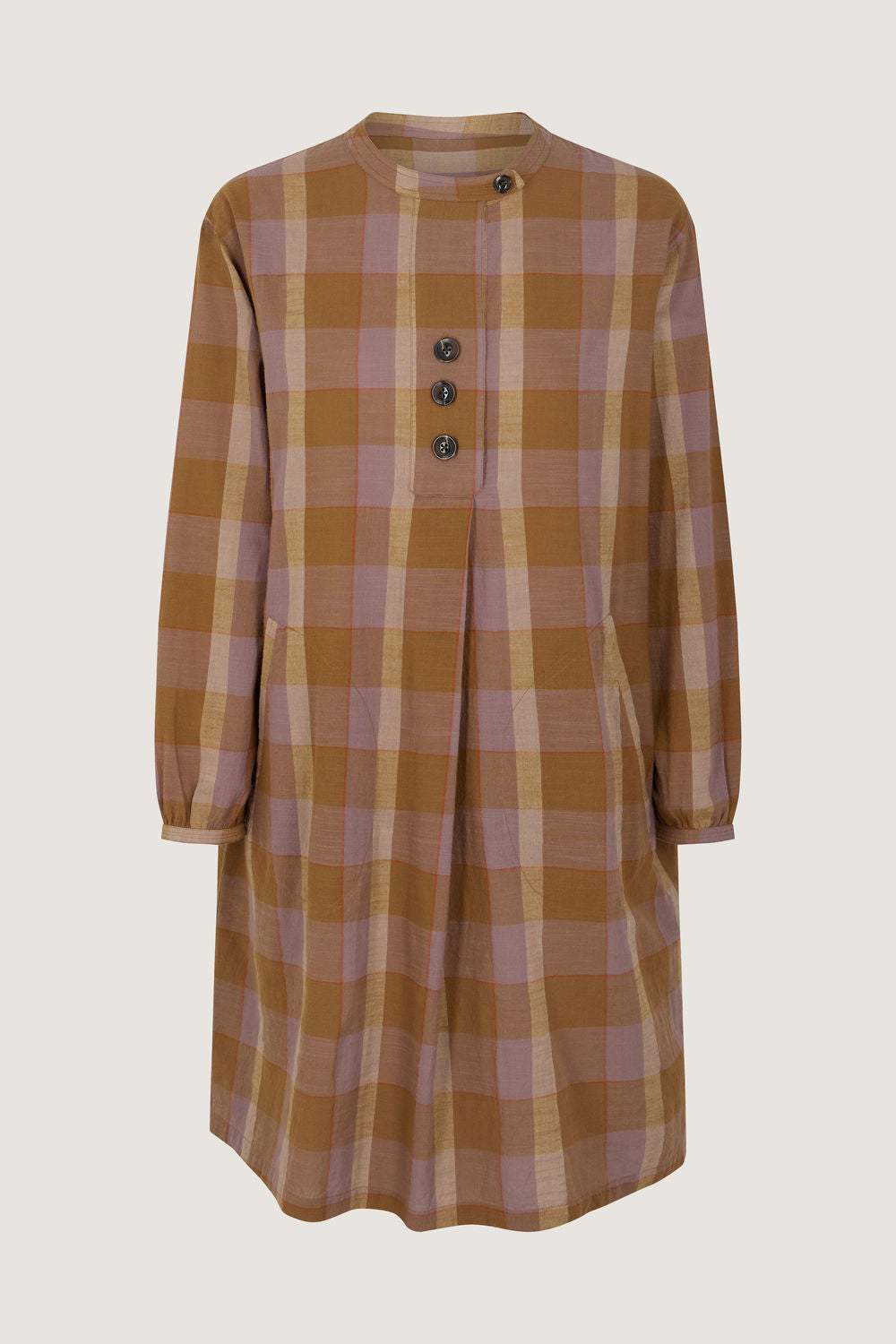 Checked cotton voile dress mauve